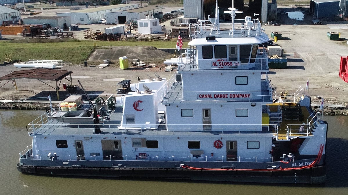 New Orleans-based Canal Barge Company has taken delivery of the first vessel in a new series of four inland pusher tugs designed and built by C&C Marine and Repair.Al Sloss has a length of 87 feet (27 metres), a beam of 34 feet (10 metres), and accommodation for up to eight crewmembers. Power is provided by two Mitsubishi S12-R main engines that each produce 1,300 hp (970 kW).The engines drive two propellers via Reintjes WAF 665 gearboxes. Also fitted are two FPT generators to supply power for the various onboard systems.The electronics suite consists of radars from Furuno, Standard Horizon VHF radios, an AIS, a bridge alarm system, a satellite compass, and a loudhailer. Two Carlisle and Finch 1,000W searchlights are also fitted.The deck equipment meanwhile includes a five-ton vertical capstan and two 40-ton winches, all supplied by Wintech.Construction of Al Sloss lasted approximately six months. The six remaining tugs in the series are scheduled to be delivered to Canal Barge at intervals of two to three months.